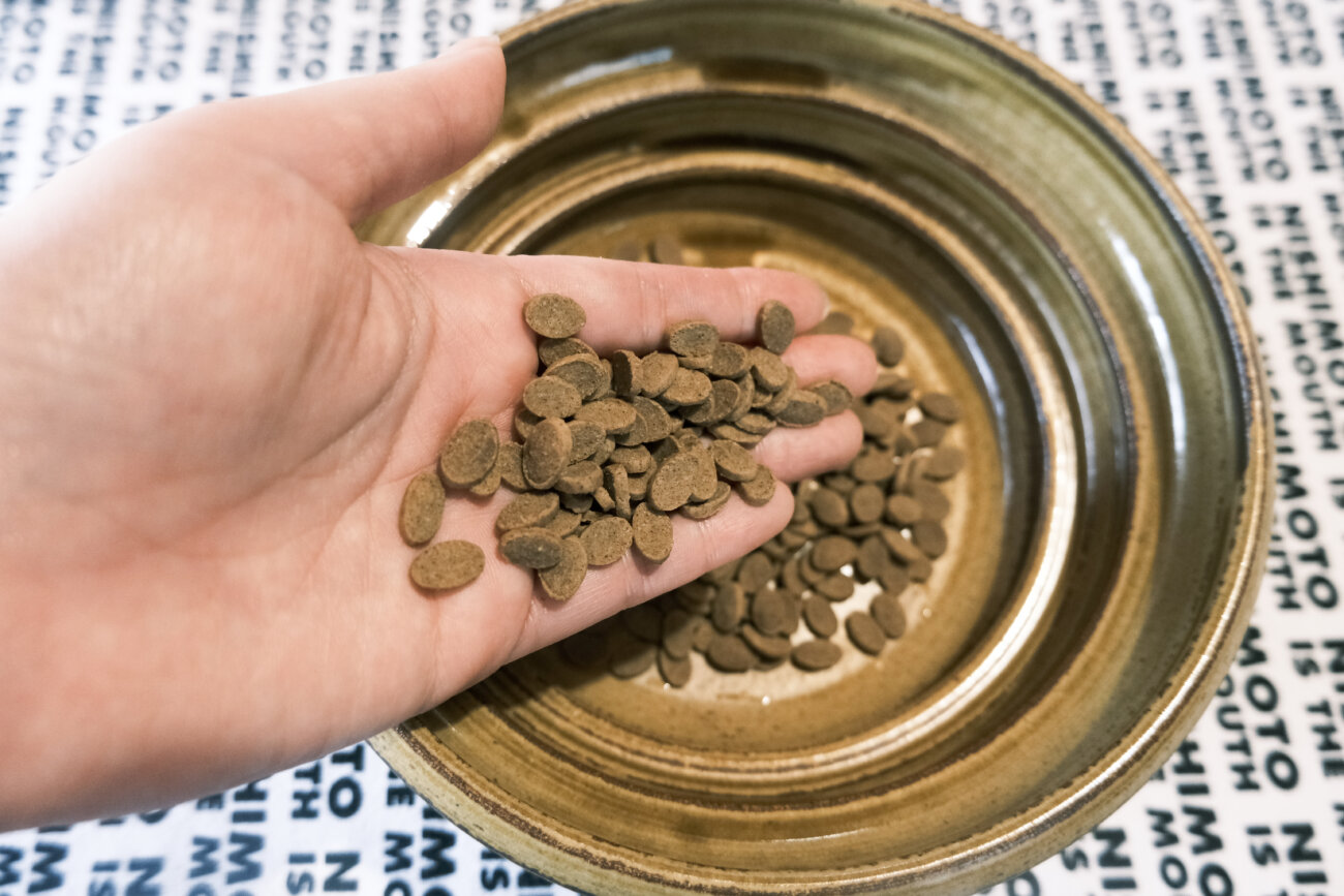 「ミシュワン」のフードは、薄くて小粒なのも特徴的。